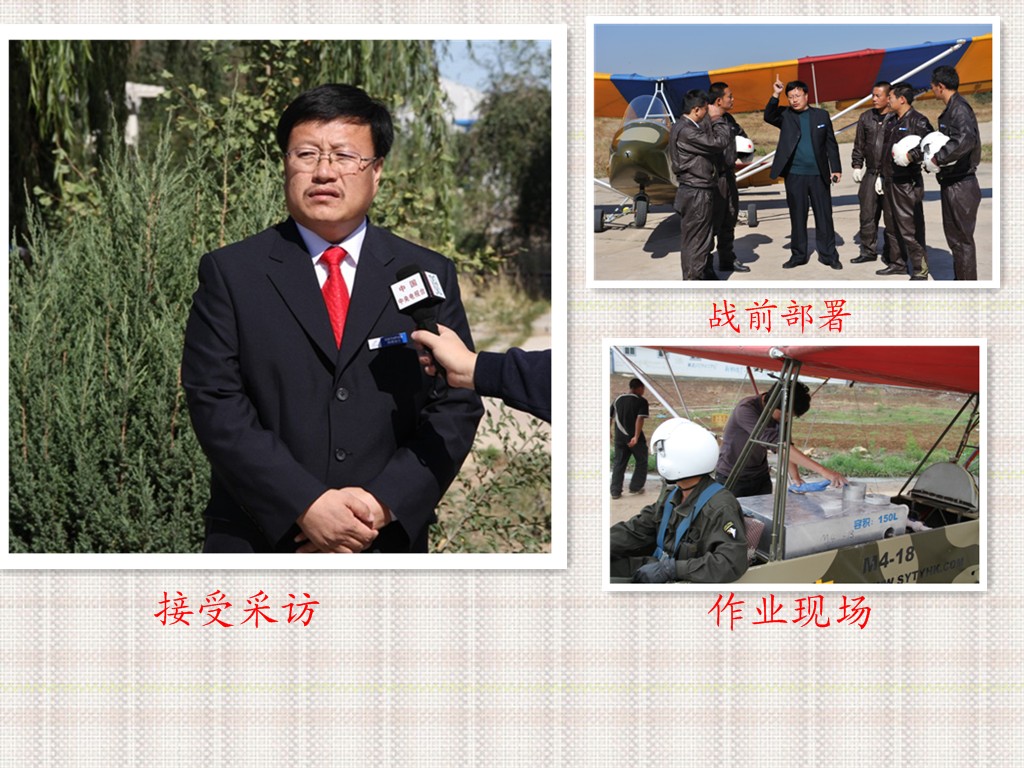 在祖國版圖的北方,茫茫的科爾沁沙地上活躍著一支以下崗職工創(chuàng)建的充滿傳奇色彩的隊(duì)伍--通遼市神鷹通用航空有限公司,他是全國第一家以超輕型飛機(jī)注冊的中國通用航空企業(yè),同時也是全國第一家集飛機(jī)播種、空中施肥、空中噴灑植物調(diào)節(jié)劑、空中除草、防治農(nóng)林牧業(yè)病蟲害、草原滅鼠、防治衛(wèi)生害蟲、航空護(hù)林、空中拍照、私用飛行駕駛執(zhí)照培訓(xùn)、航空運(yùn)動訓(xùn)練飛行、航空運(yùn)動表演飛行、個人娛樂飛行為主營業(yè)務(wù)的綜合性通用航空企業(yè)。現(xiàn)有超輕型飛機(jī)30余架,號稱中國私人第一飛行機(jī)群,從業(yè)人員70余人的專業(yè)進(jìn)行農(nóng)林牧業(yè)作業(yè)的社會福利型團(tuán)隊(duì),多年來在防治農(nóng)林牧業(yè)病蟲害工作中默默無聞的為改善祖國生態(tài)環(huán)境做著不懈的努力,截止2010年9月1日,在我國山東省、河北省、遼寧省、吉林省、內(nèi)蒙古自治區(qū)共進(jìn)行飛機(jī)防治農(nóng)林牧業(yè)病蟲害和飛機(jī)播種2500萬畝,積極參與了“綠色奧運(yùn)環(huán)保飛行”、國家項(xiàng)目“京津唐風(fēng)沙源治理工程”、“遼寧省荒山治理工程”、“內(nèi)蒙古荒沙荒山治理工程”等多項(xiàng)國家“十一.五”期間重點(diǎn)工程項(xiàng)目,特別是2008年以后,在我國北方沿海地區(qū)美國白蛾泛濫,公司上下齊動員在蟲災(zāi)最嚴(yán)重的河北省、山東省連續(xù)三年作業(yè),為抑制美國白蛾在我國大面積泛濫做出不懈努力,得到當(dāng)?shù)卣陀嘘P(guān)單位的一致好評,2009--2010年內(nèi)蒙古自治區(qū)西部蝗蟲泛濫,大片農(nóng)田、草原頃刻間被吞噬,神鷹航空公司義不容辭,積極參加到與自然災(zāi)害作斗爭的現(xiàn)場,以一絲不茍、認(rèn)真負(fù)責(zé)的精神,在自然環(huán)境極其艱苦的條件下很好的完成任務(wù),許下了“蝗蟲不滅不回家”的豪言壯語。得到有關(guān)部門和廣大群眾的一致好評。