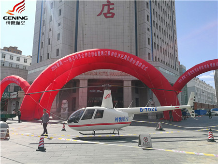 2018年9月6日,2018蒙商-通遼項(xiàng)目合作洽談會(huì)暨通遼蒙商經(jīng)濟(jì)發(fā)展促進(jìn)會(huì)揭牌儀式在內(nèi)蒙古通遼市榮達(dá)酒店舉行。通遼市神鷹通用航空有限公司作為會(huì)員單位參加了此次活動(dòng)?;顒?dòng)中,展示了公司自主研發(fā)的先鋒一號(hào)無人機(jī)和新引進(jìn)的美國(guó)羅賓遜R44直升機(jī),受到了與會(huì)領(lǐng)導(dǎo)與嘉賓的一致好評(píng)。