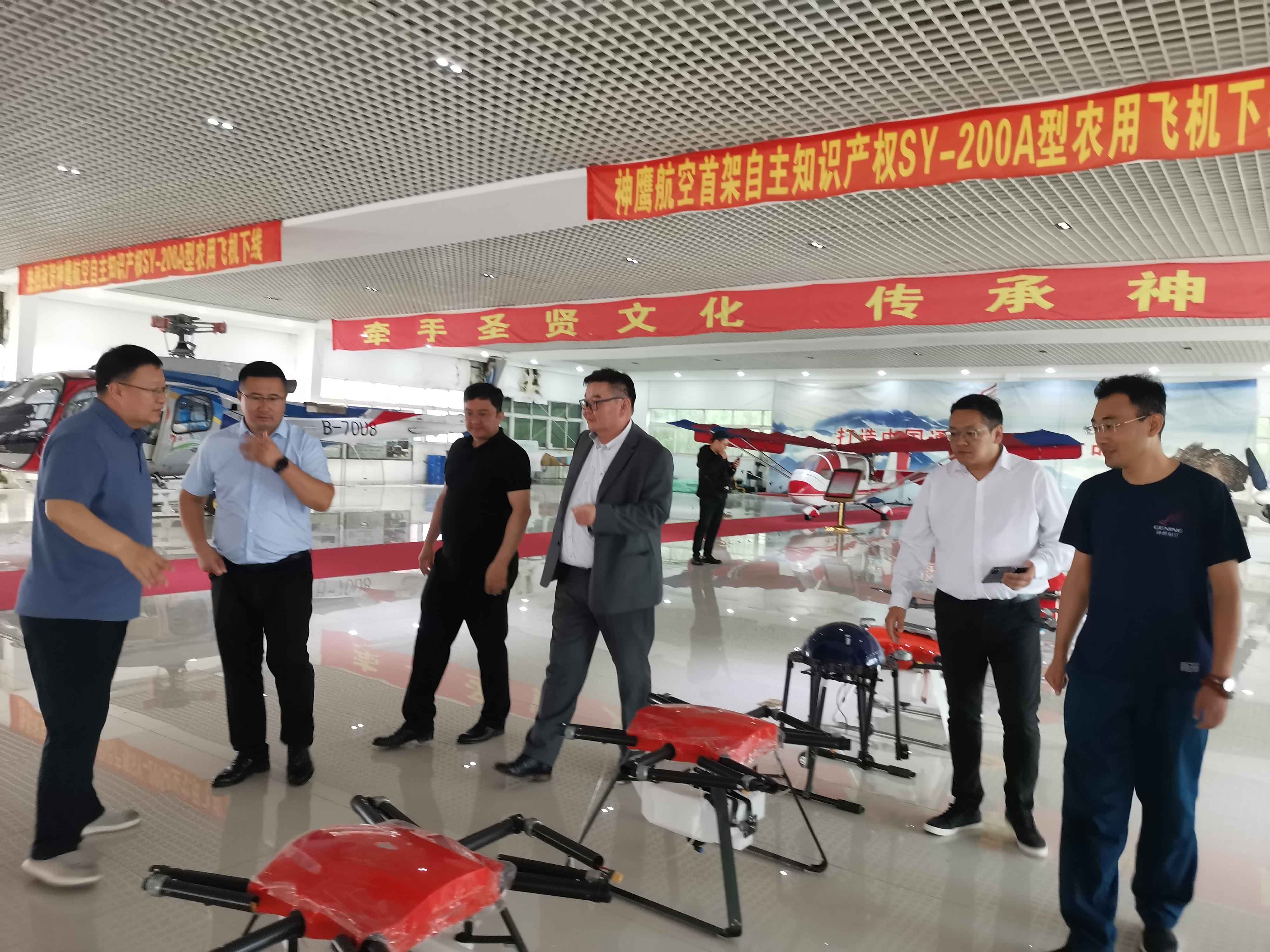 在神鷹航空集團董事長邱志剛及內(nèi)蒙古神鷹飛機制造有限公司相關(guān)技術(shù)專家的陪同下,代表團深入考察了該企業(yè)的飛機展廳。期間,內(nèi)蒙古神鷹飛機制造有限公司重點展示了明星機型 “云天 300” 無人機的卓越性能與廣泛應(yīng)用場景,并通過詳實的技術(shù)匯報,讓代表團深入了解到該機型在農(nóng)業(yè)植保精準化、高原極地物流智能化、應(yīng)急救援高效化等領(lǐng)域的重大突破與顯著成效。尤其值得關(guān)注的是,代表團對 “云天 300” 在蒙古國廣袤地域的應(yīng)用潛力給予高度評價與認可,特別指出其在邊境及國土巡視、物流運輸?shù)汝P(guān)鍵領(lǐng)域展現(xiàn)出強大適用性,市場需求十分迫切。?